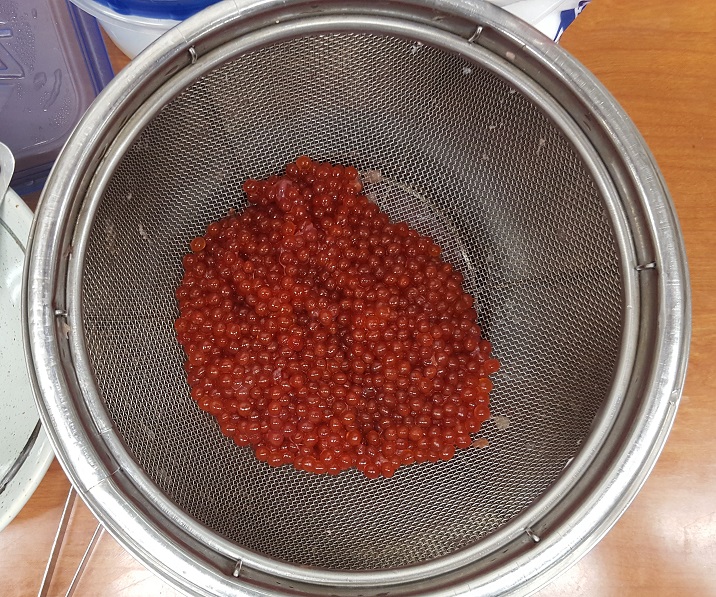 講師のこぐれあいこ先生の指導で、”いくらのしょうゆ漬け”と鮭フライ タルタルソース”に挑戦しました。