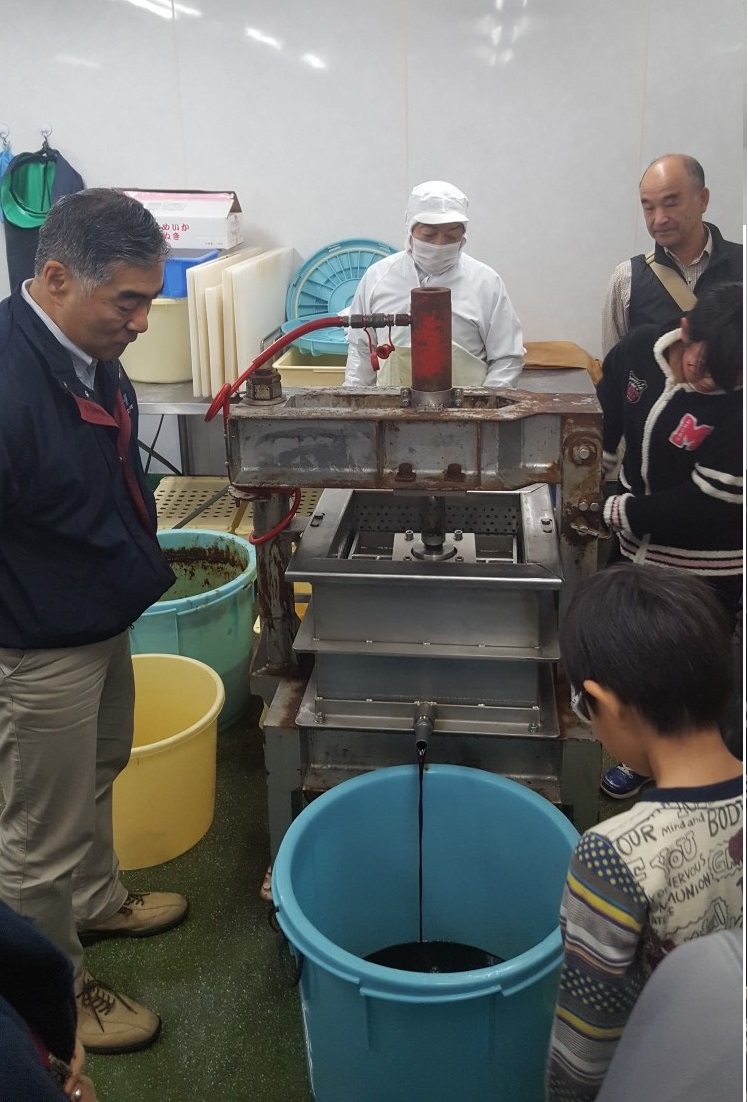 HOME » TOPICS » 魚醤ができました! 魚醤ができました! 2017.12.01 8月に未利用魚を切って、塩とこうじを加えて約3ケ月間、発酵させていた魚醤の準備が整い、プレス機を 使って魚醤の抽出作業を行いました。 💛完成した魚醤にオリジナルのラベルを貼って、自分だけの”おさかなの調味料”の出来上がりです。 参加された皆さん、お疲れさまでした。💛